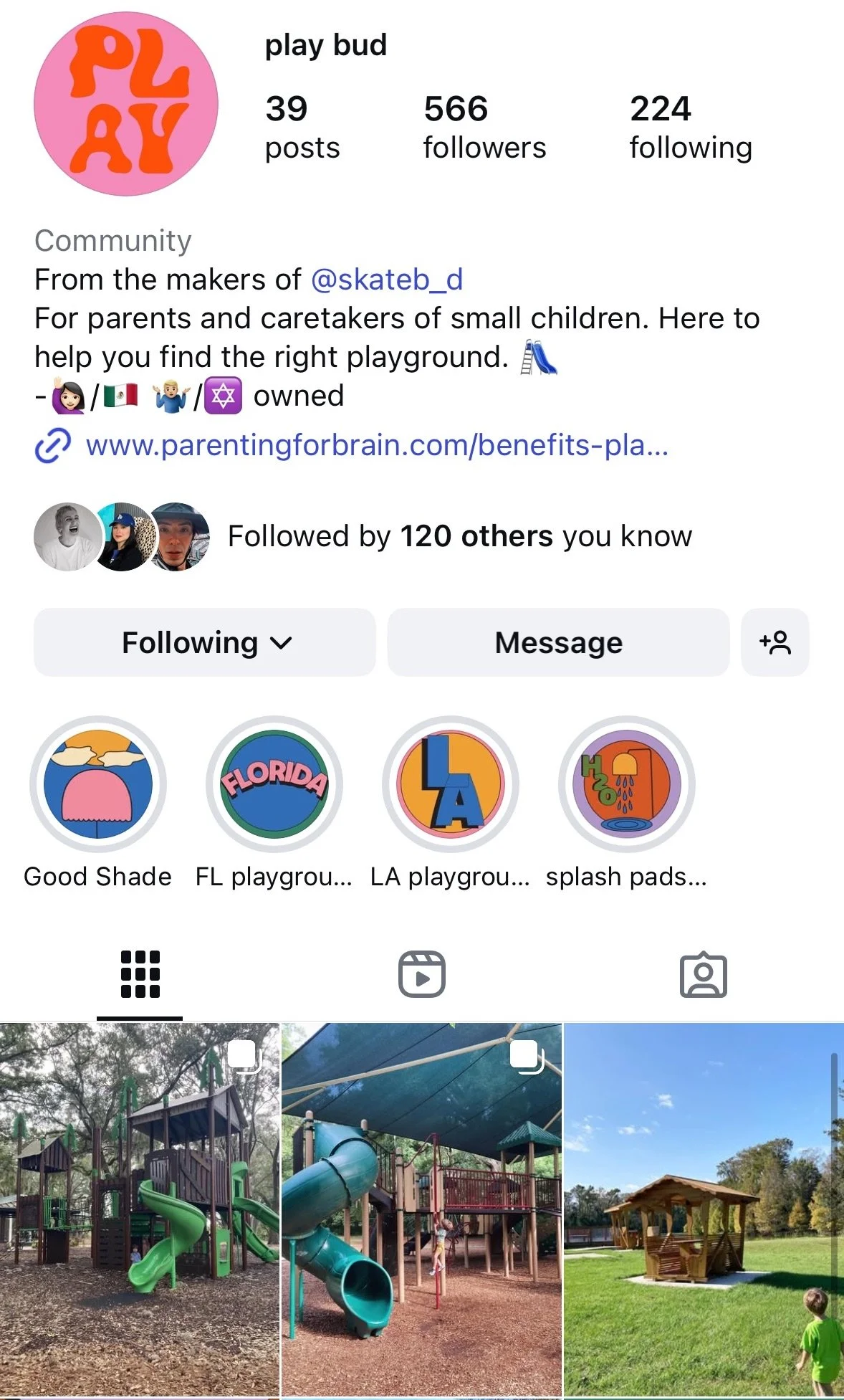 Playbud is a resource designed to help caregivers find the right playgrounds. I created the brand’s visual identity from the ground up — designing custom fonts and building a cohesive, playful aesthetic for social media. I also concepted and produced all initial content, ensuring each post communicated clarity, warmth, and accessibility for busy caregivers.